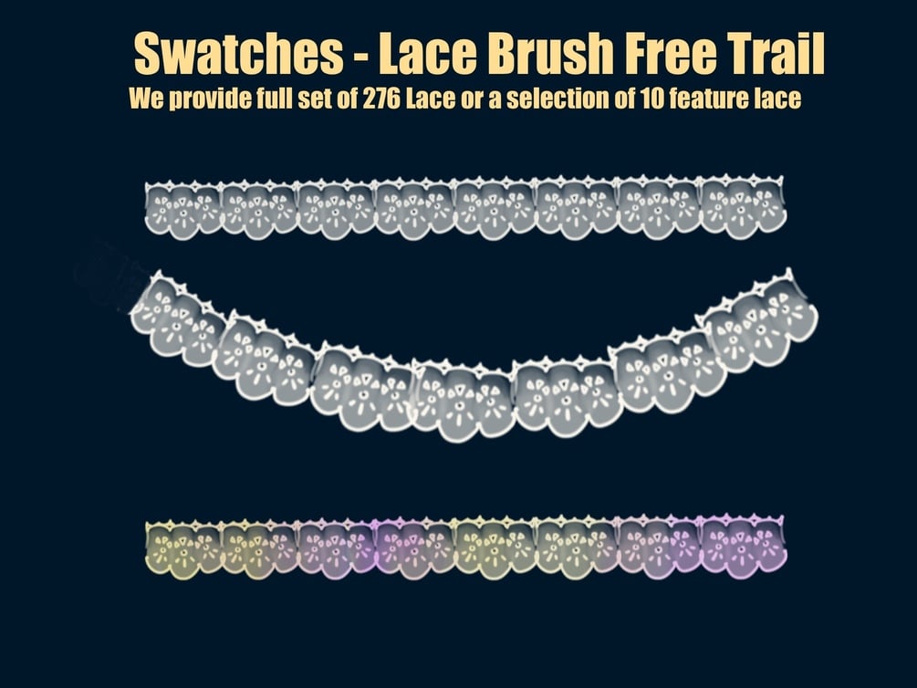 Free Trial- Procreate Lace Brushes Seamless- Procreate Stamps - Fashion illustration - Fashion Design- -Textile - lace border