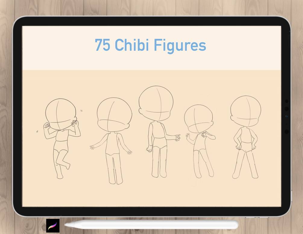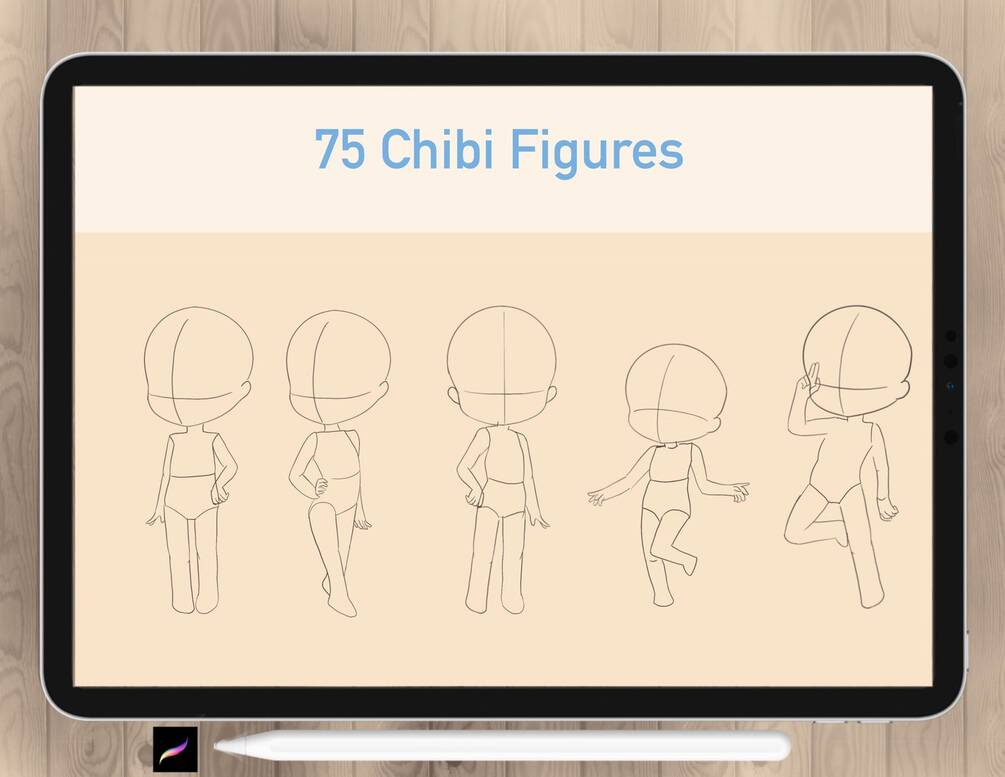 75 Chibi Figures Pose, Procreate Chibi Stamps Guide. Procreate Cartoon Figure, Procreate Cartoon Stamps, Procreate Anime Portrait
