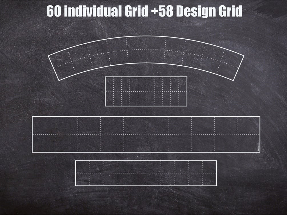 The set includes a total of 118brushes: • 60 single grid • 58 design Template